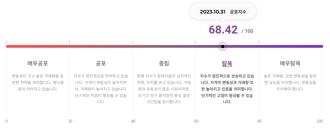 UBCI가 제공하는 가상자산 공포-탐욕 지수는 31일 기준 68.42을 기록하며 '탐욕' 단계를 유지하고 있다.