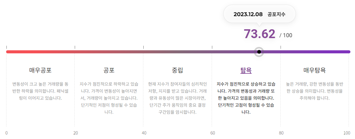 UBCI가 제공하는 디지털자산 공포-탐욕 지수는 8일 기준 73.62를 기록하며 '탐욕' 단계를 유지하고 있다.