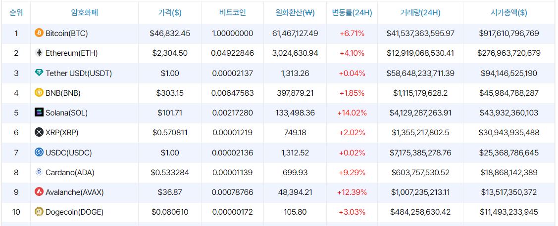 [마감 시세브리핑] 비트코인 4만6830달러선...6% 상승폭 유지
