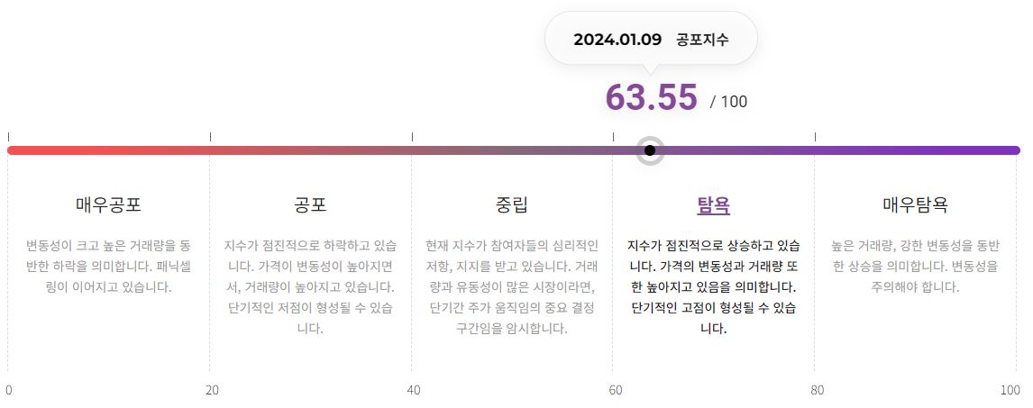 UBCI가 제공하는 디지털자산 공포-탐욕 지수는 9일 기준 63.55를 기록하며 '탐욕' 단계에 머물고 있다.