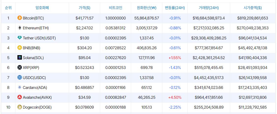 암호화폐 시장이 약보합세를 보이고 있다.