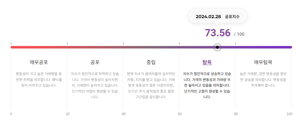 UBCI가 제공하는 디지털자산 공포-탐욕 지수는 28일 기준 72.41을 기록하며 '탐욕' 단계를 유지하고 있다.