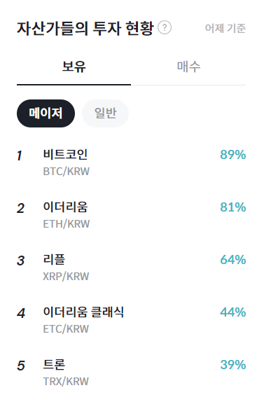 자산가들이 전날 주로 매수한 암호화폐는 비트코인(BTC) 이더리움(ETH) 리플(XRP) 이더리움클래식(ETC) 트론(TRX)순으로 집계됐다.