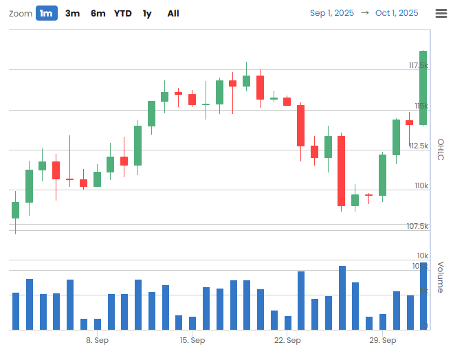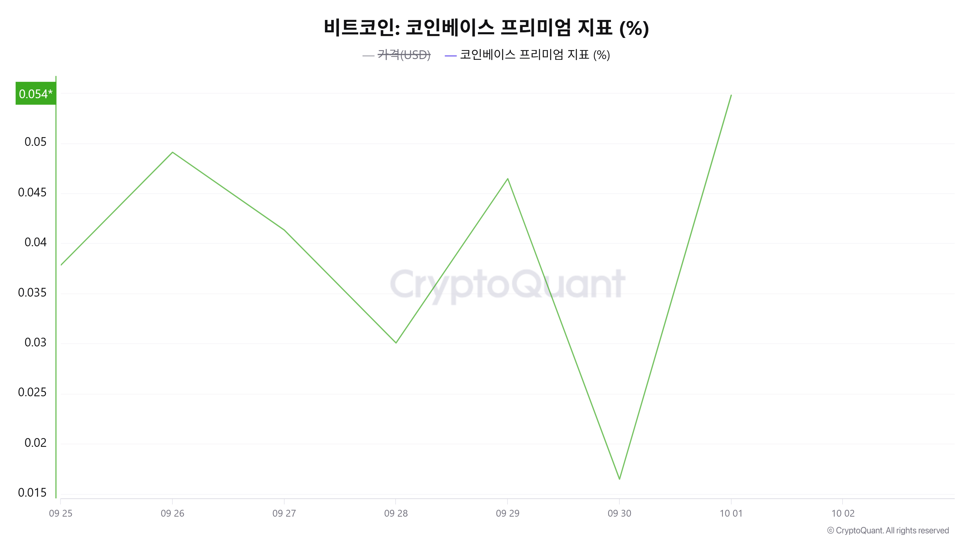 코인베이스 프리미엄 지표는 10월 1일 0.054%를 기록하며 플러스 흐름을 이어갔다.