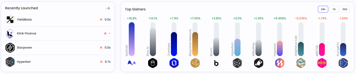 시가총액 기준 상위 플랫폼은 ▲바이낸스 월렛(1670억 달러) ▲바이낸스 런치패드(1670억 달러) ▲OKX 점프스타트(37억6000만 달러)였으며 사용자 관심 기준 상위 플랫폼은 ▲바이비트(1.12배) ▲폴카스타터(0.335배) ▲바이낸스 런치패드(6.03배)로 나타났다.