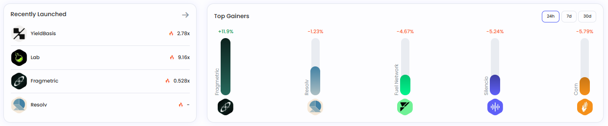최근 해당 플랫폼에서 출시된 프로젝트는 ▲일드베이시스(2.78배) ▲랩(9.16배) ▲프랙메트릭(0.53배) ▲리졸브(–) 등으로 확인됐다.