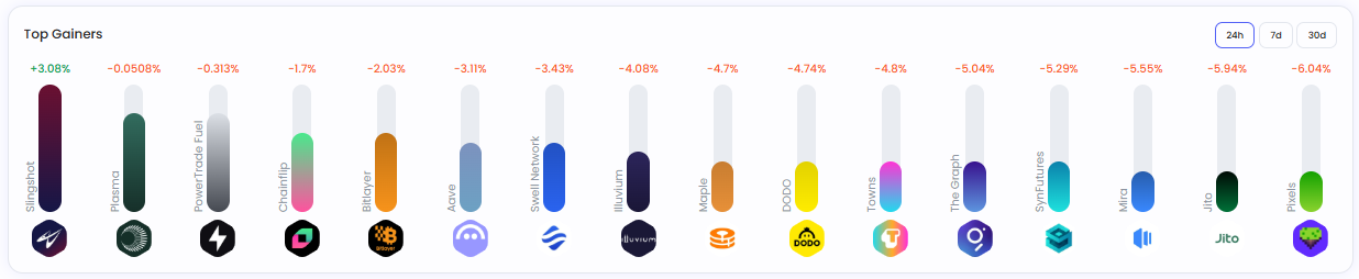 펀드 종목 중 ▲슬링샷(+3.08%)이 상승세를 보였으며 ▲플라즈마(–0.05%) ▲파워트레이드퓨얼(–0.31%) ▲챈플립(–1.7%) ▲바이저(–2.03%) 등은 소폭 하락했다.