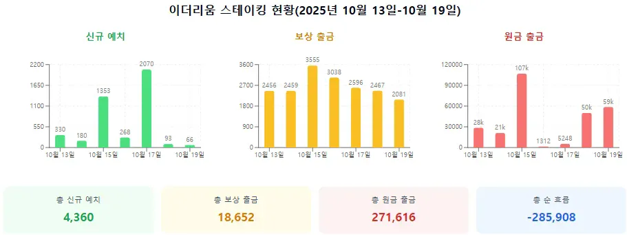 신규 예치가 극도로 감소하고 원금 출금이 지속되어 1주간의 전체 순변동은 -28만5908ETH로 집계됐다.