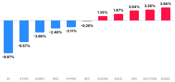 역프리미엄 구간 IN(–9.97%)|ETHFI(–6.57%)|JASMY(–3.66%)|SNX(–2.48%)|HYPER(–2.11%)