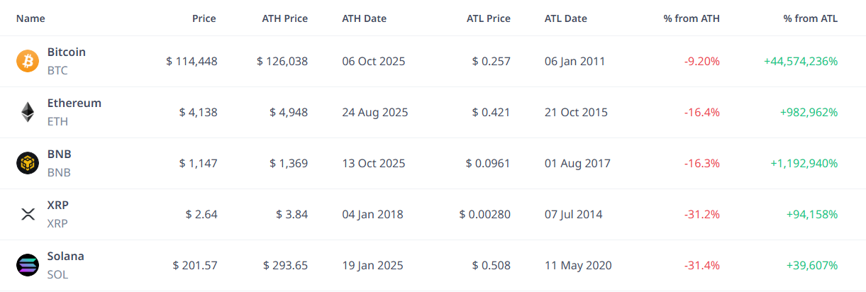 현재가 114448달러 | ATH 126038달러 (–9.20%)