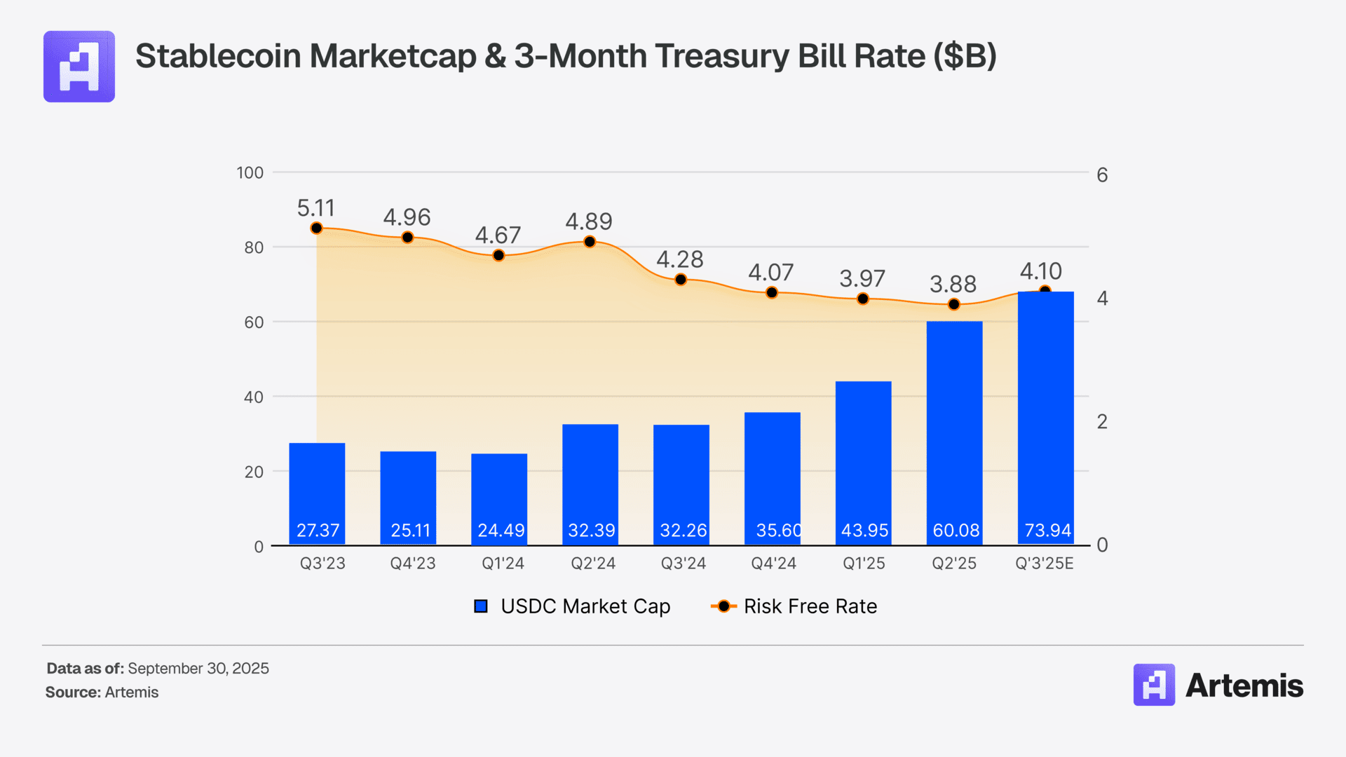 스테이블코인 수익 또한 큰 폭의 성장을 보였다. USDC 시가총액은 740억 달러(약 104조 8,000억 원)로 129% 급증했다. 평균 3개월 만기 미국 국채 수익률과 USDC 공급량을 반영해 산출한 결과, 코인베이스가 수령한 수익은 약 4억 300만 달러(약 5,717억 원, +63% YoY)에 이른다.