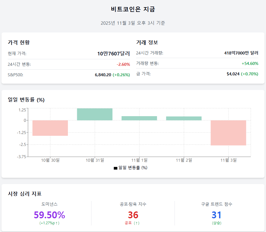 2025년 11월 3일 오후 3시 기준