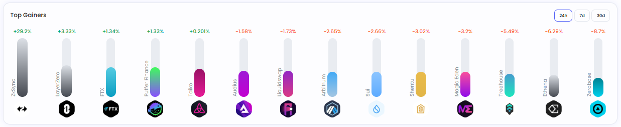 펀드 종목 중 ▲지케이싱크(+29.2%) ▲레이어제로(+3.33%) ▲에프티엑스(+1.34%) ▲퍼퍼파이낸스(+1.33%) ▲타이코(+0.20%)가 상승세를 보였다.