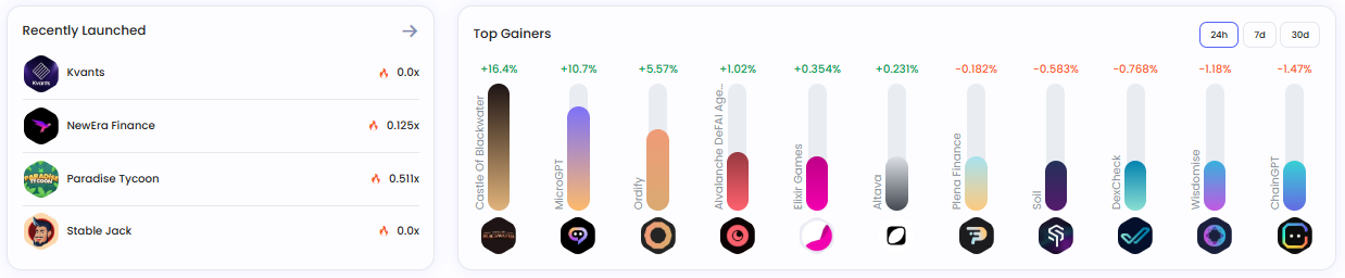 최근 해당 플랫폼에서 출시된 프로젝트는 ▲크반츠(0.0배) ▲뉴에라파이낸스(0.125배) ▲파라다이스타이쿤(0.511배) ▲스테이블잭(0.0배) 등으로 확인됐다.