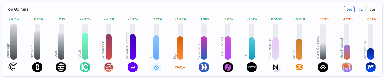 펀드 종목 중 ▲캠브리지(+12.5%) ▲레이어제로(+6.73%) ▲에이프토스(+5.1%) ▲쿠코인(+4.79%) ▲세이네트워크(+4.19%)가 상승세를 보였다.
