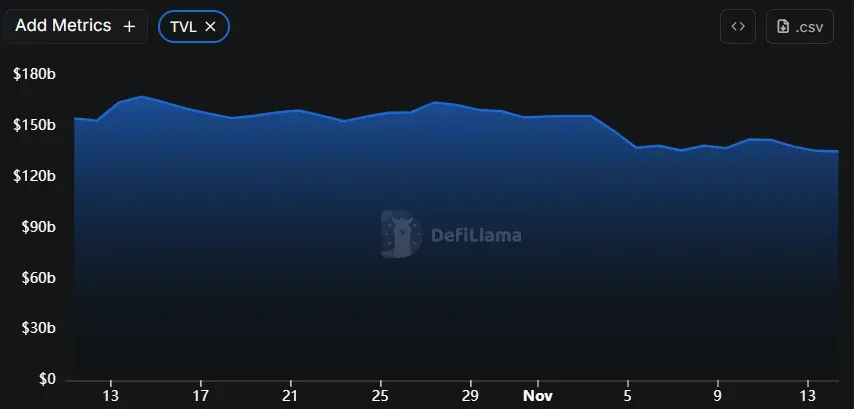 탈중앙화 금융(DeFi, 디파이) 생태계의 총예치액(TVL)이 1342억 달러로 소폭 감소했다.