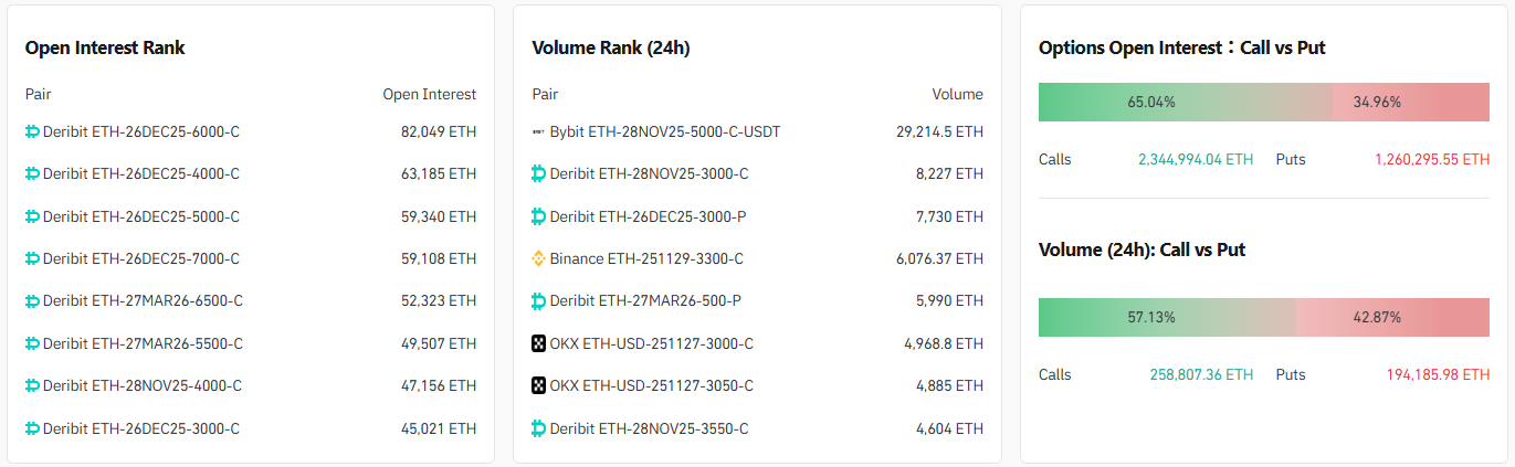 이더리움 옵션 시장이 미결제약정 증가와 고행사가 콜옵션 중심 거래 확대로 단기와 중기 모두에서 강한 상승 기대를 다시 끌어올리고 있다.