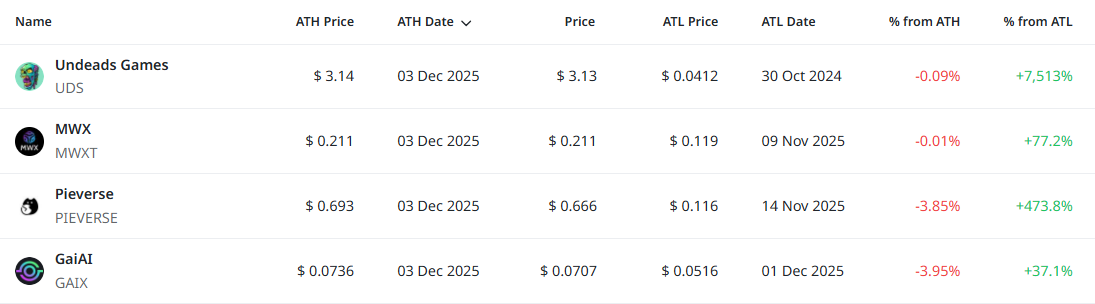 ATH 3.12달러 (–94.5%) | ATL 0.0800달러 (+113%)