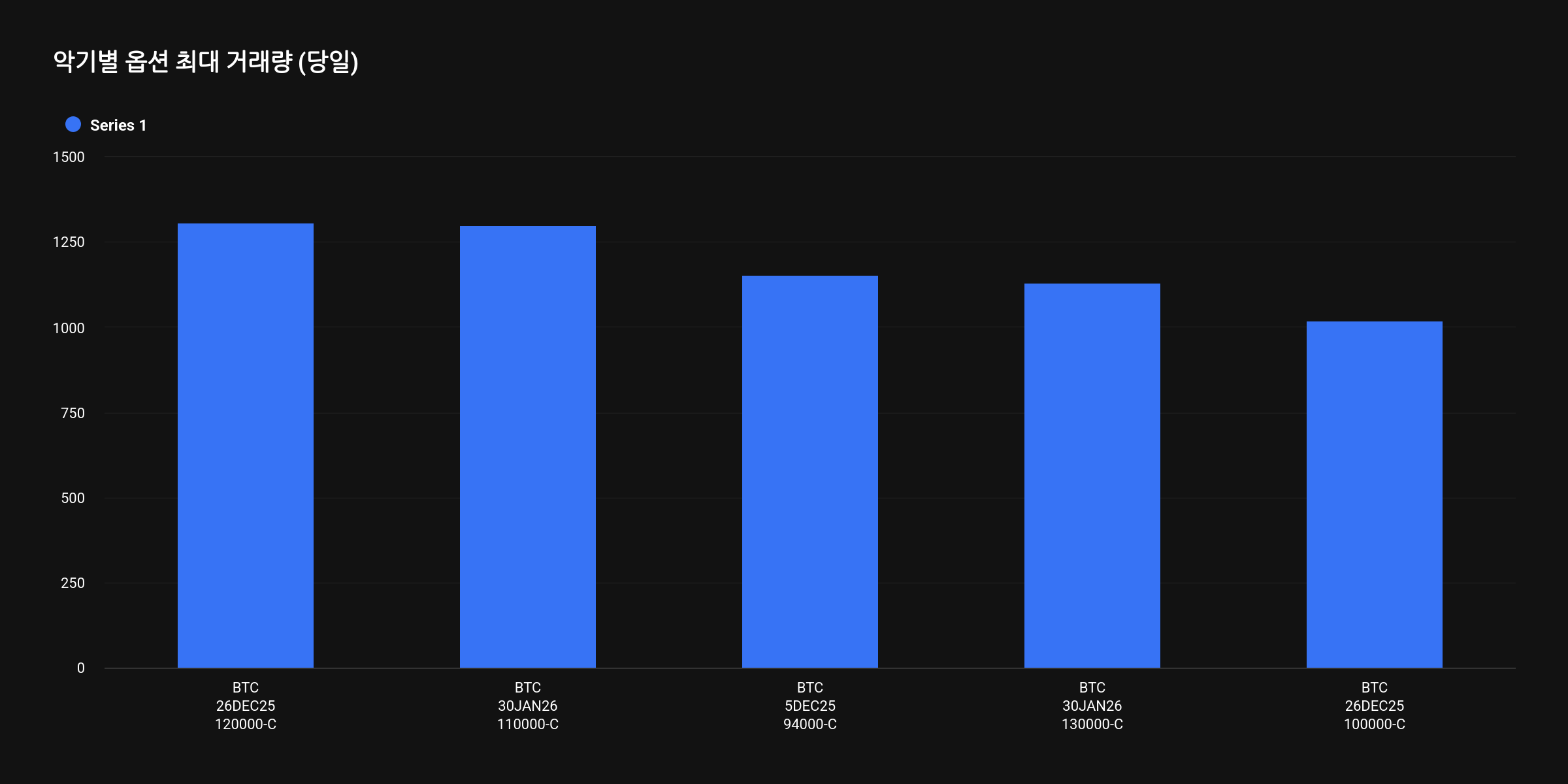 최근 24시간 동안 거래된 옵션 계약을 보면 풋옵션 거래량은 1만4926건, 콜옵션 거래량은 2만49건으로 콜옵션이 우위를 보였다. 24시간 거래량 기준 풋/콜 비율은 0.74이다.