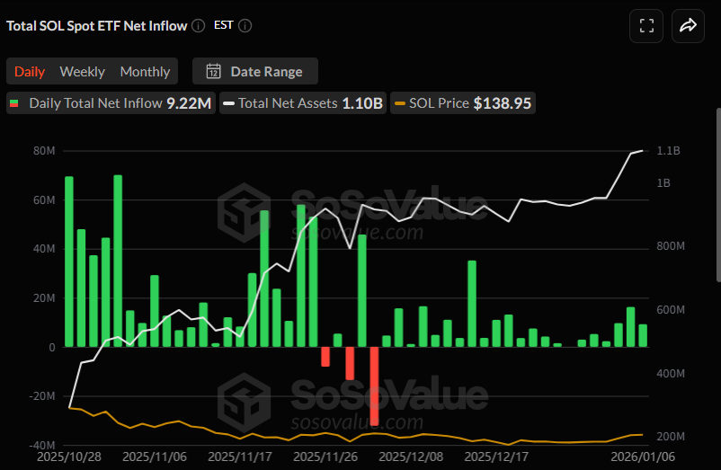 솔라나 현물 ETF 시장에서는 922만 달러의 일간 순유입이 집계됐다.
