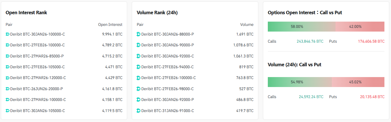 24시간 거래량 기준으로는 콜옵션 49.75%, 풋옵션 50.25%로 집계돼 단기 거래에서는 방향성 베팅이 비교적 균형을 이루는 흐름이 나타났다.