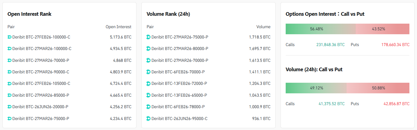 가장 많은 미결제약정이 몰린 계약은 ▲10만 달러 콜옵션(2월 27일) ▲10만 달러 콜옵션(3월 27일) ▲7만 달러 풋옵션(3월 27일) 순으로 집계됐다.