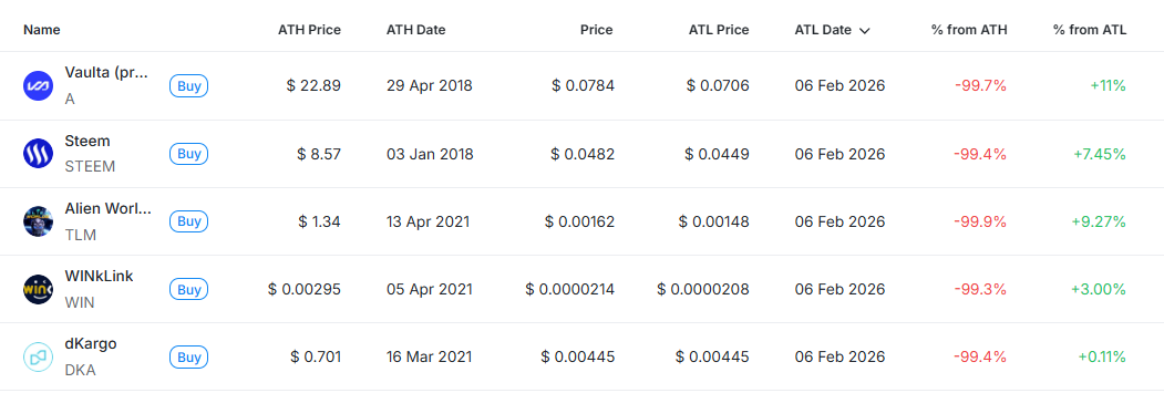 ATH 0.421달러 (–98.3%) | ATL 0.00662달러 (+6.82%)