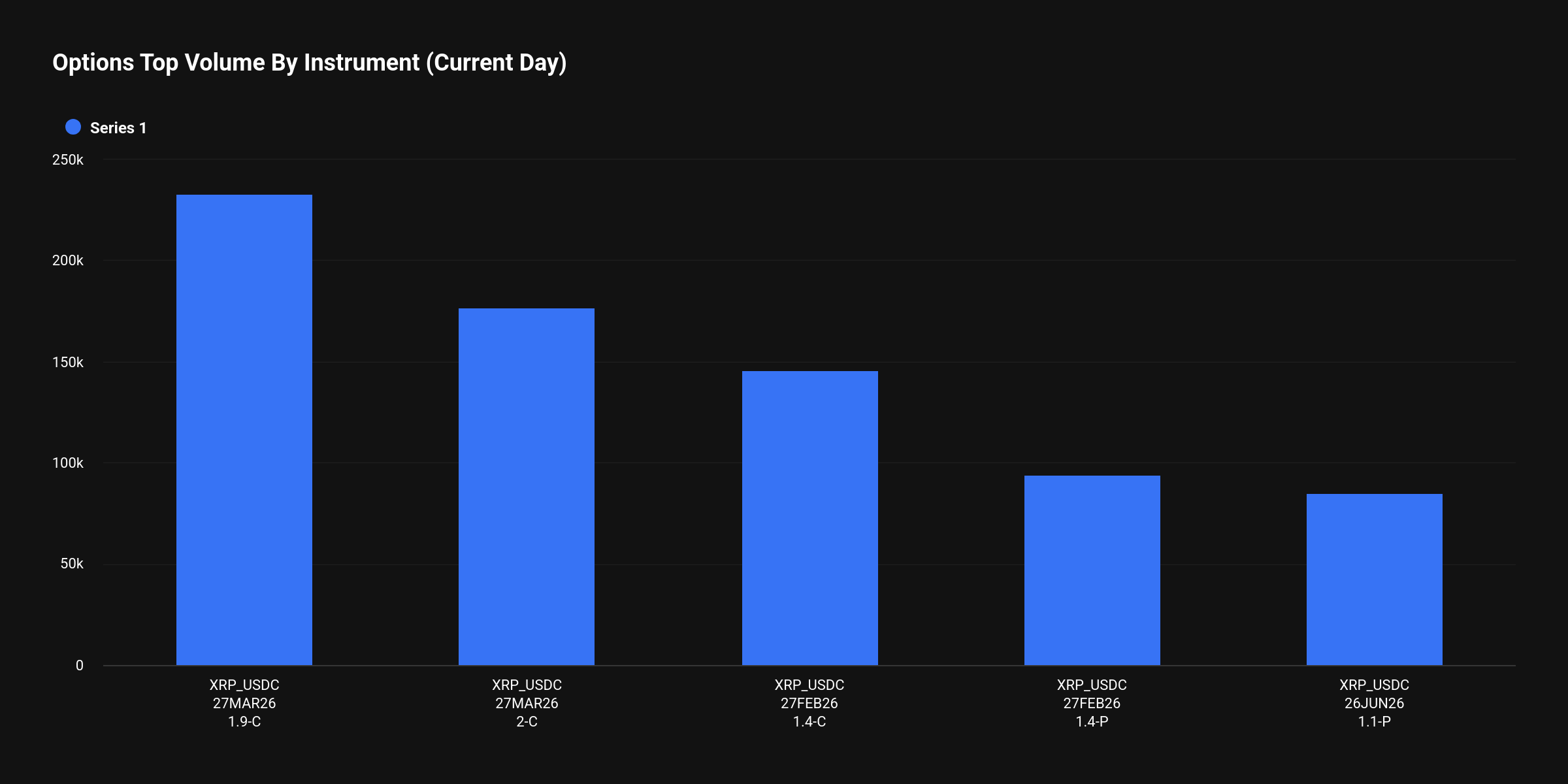 XRP 1.9달러 콜옵션(3월 27일)|2달러 콜옵션(3월 27일)|1.4달러 콜옵션(2월 27일)|1.4달러 풋옵션(2월 27일)|1.1달러 풋옵션(6월 26일)