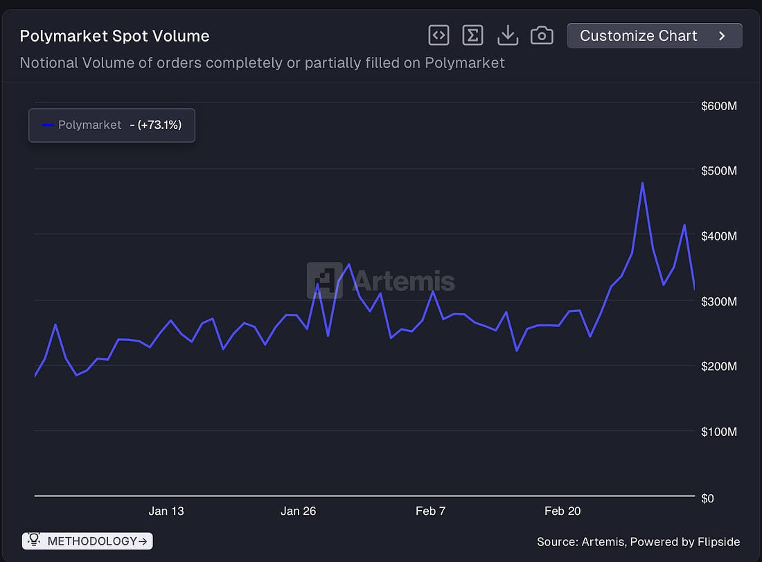 폴리마켓은 거래 정산을 스테이블코인 USDC로 진행한다. 이에 따라 예측시장 거래 증가가 온체인 스테이블코인 인프라 수요를 확대하는 요인 가운데 하나로 작용하고 있다는 분석도 나온다.