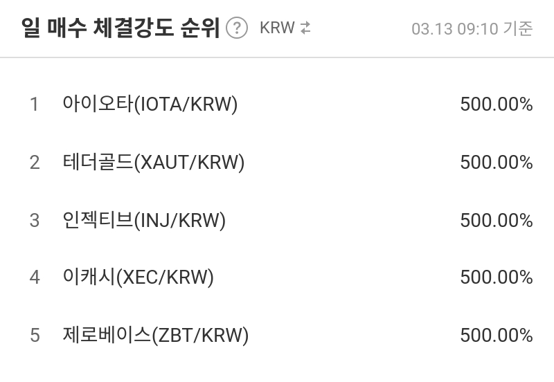 1위 아이오타 (IOTA/KRW) 500.00%