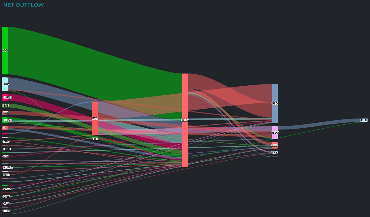 암호화폐 시장에서 이더리움으로 자금이 집중된 가운데 CC, 비트코인 등은 유출세가 더 우세한 모습이 나타났다.