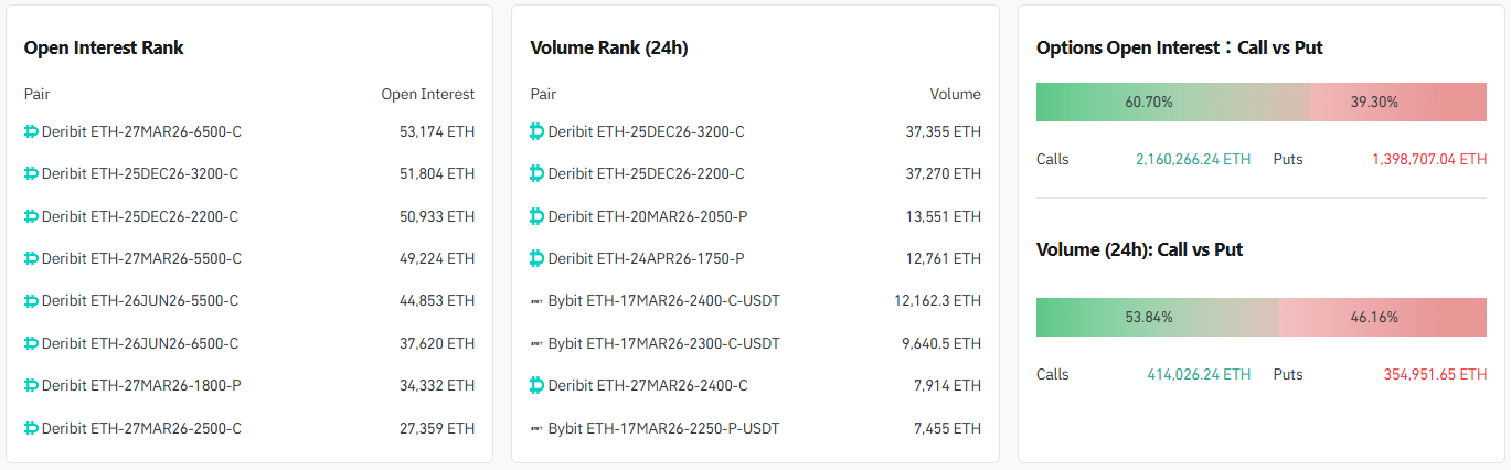 이더리움 옵션 시장에서 미결제약정 급증과 함께 상승 베팅이 이어지는 흐름이 나타났다