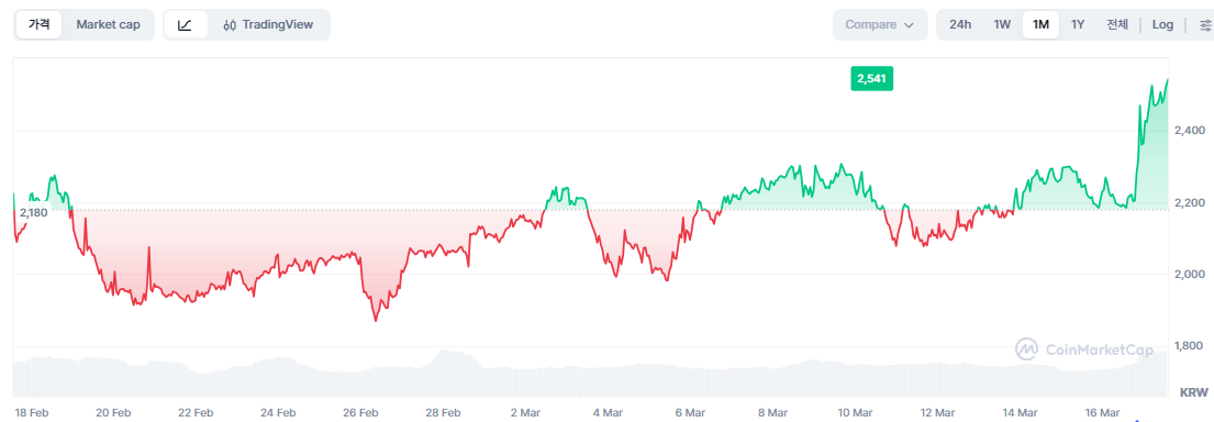 최근 7일 기준 상승률도 17% 수준을 기록하면서, 단기적으로 자금 유입이 지속되고 있는 흐름이 확인된다.