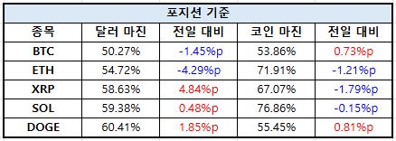 이처럼 동일 자산 내에서도 마진 구조와 계좌 기준에 따라 포지션 방향이 엇갈리는 모습이 나타나고 있으며, 이는 단기 변동성 확대 국면에서 투자자들이 다양한 전략으로 대응하고 있음을 시사한다.