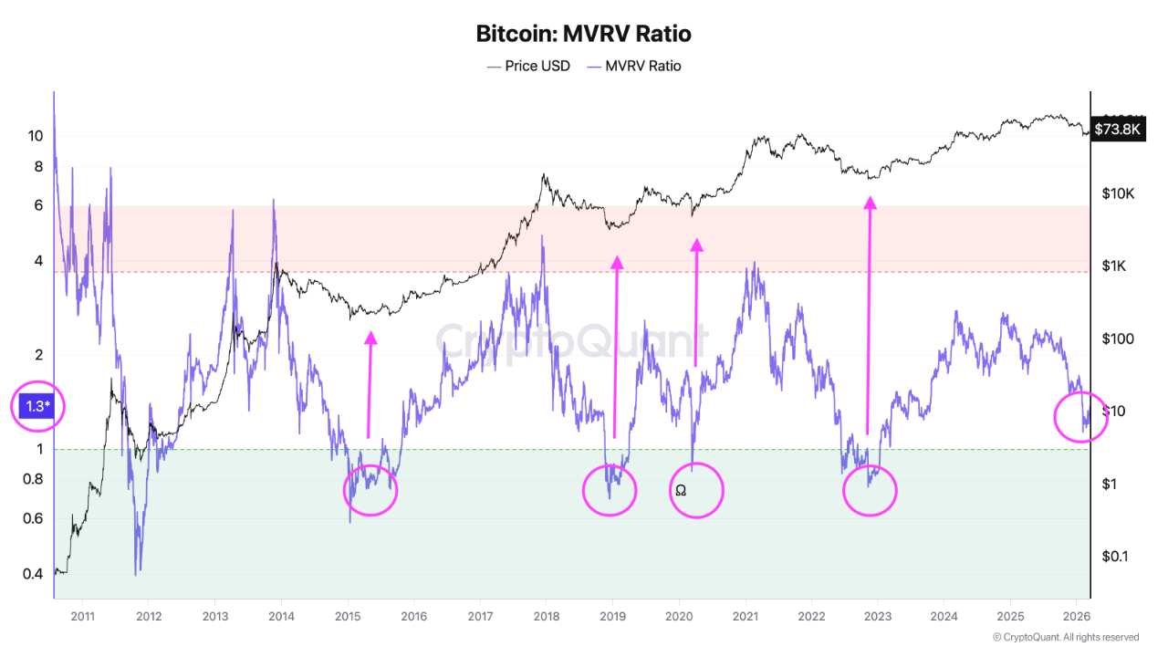 특히 MVRV가 1.0 이하 구간으로 재진입하지 않은 점은 단순한 조정 미완료가 아니라 시장 구조 자체가 변화했을 가능성을 시사한다. 이에 따라 과거처럼 ‘녹색 구간 진입’을 기다리는 전략이 오히려 기회를 놓치는 결과로 이어질 수 있다는 경고도 제기됐다.