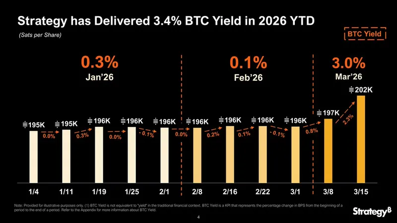 회사는 또한 3월 첫 2주 동안 주당 비트코인(BPS)이 약 3.0% 상승했다고 밝혔다. 이는 STRC를 통한 자본 조달 확대가 주요 요인으로 작용한 결과로, 해당 우선주가 스트래티지의 핵심 자금 조달 수단으로 자리잡고 있음을 시사한다.
