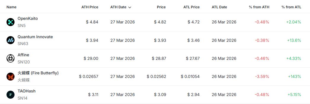 ⑤ 타오해시(SN14) 현재가 3.09달러 | ATH 대비 -0.48%