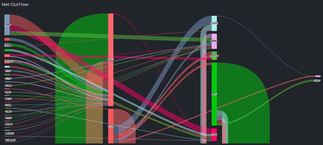 이날 USDT에 2829만 달러, USDC에 467만 달러, FDUSD에 259만 달러가 모였으며, 법정화폐 ▲원화(KRW) 464만 달러 ▲달러(USD) 387만 달러 등으로 현금화가 진행됐다.