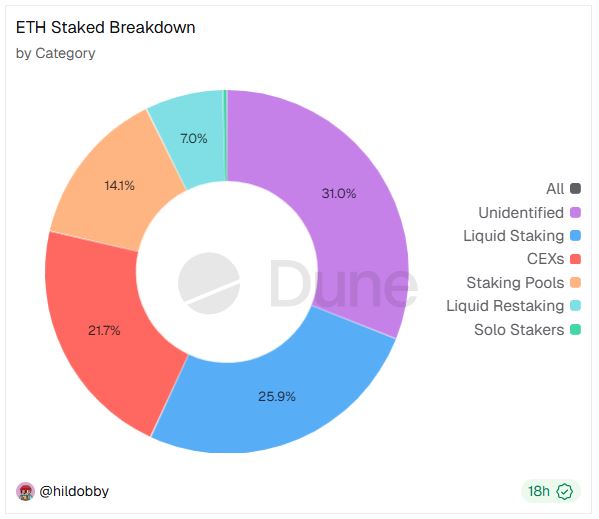 단일 스테이커 순위를 보면 ▲리도가 904만3392 ETH를 예치하며 약 23.3%의 최대 점유율을 유지하고 있다.