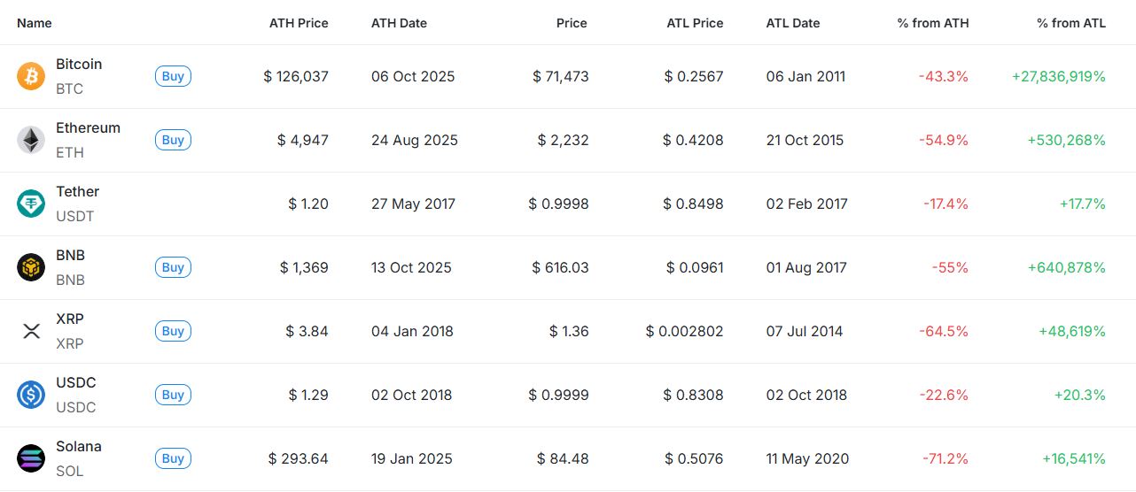 ① 비트코인(BTC) 현재가 71473달러|ATH -43%