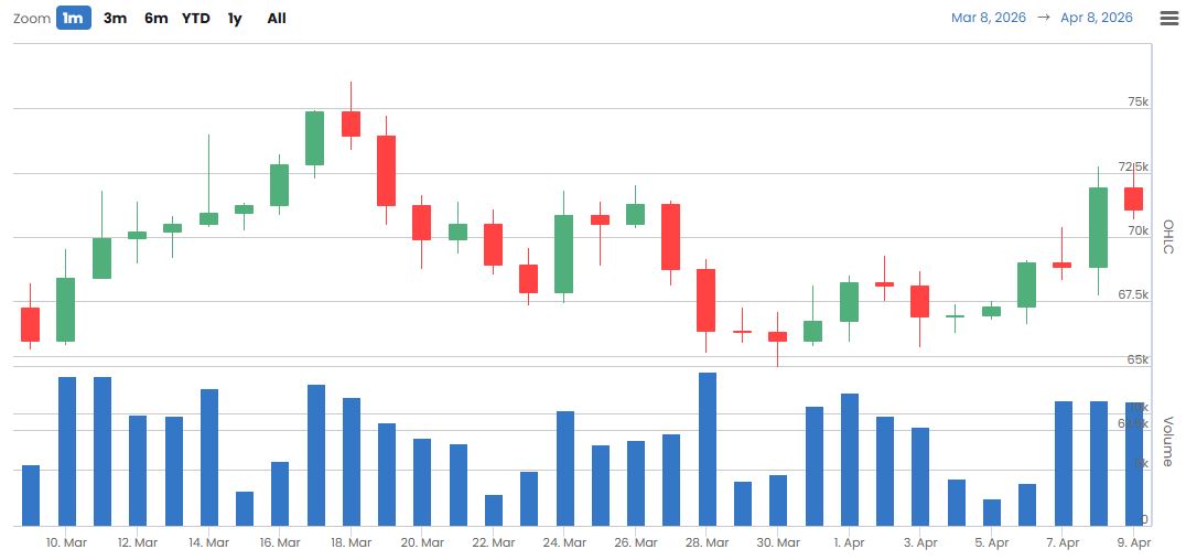 앞서 4월 5일(+176BTC), 6일(+5981BTC), 7일(-3441BTC), 8일(+4155BTC)에 이어 4월 9일(-188BTC, 미완결)로 나타나며 유입과 유출이 반복되는 흐름이 이어지고 있다. 최근에는 대규모 유입 이후 순유입 강도가 둔화된 데 이어 다시 순유출로 전환되며 기관 수급 변동성이 확대되는 양상이 확인된다.