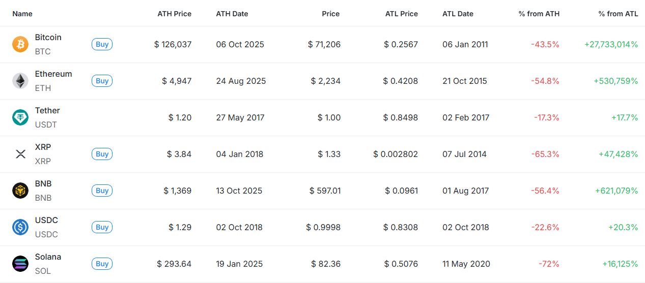 ① 비트코인(BTC) 현재가 71206달러|ATH -43.5%