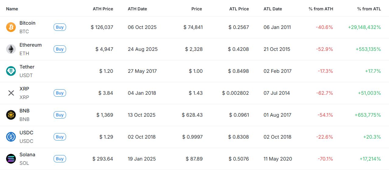 ① 비트코인(BTC) 현재가 7만4841달러|ATH -40.6%