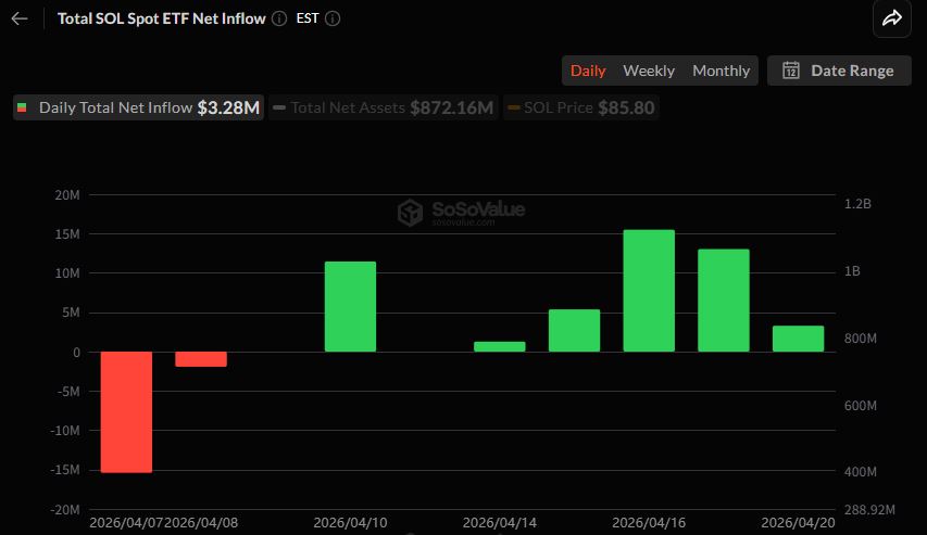 솔라나(SOL) 현물 ETF 시장은 328만 달러의 순유입을 기록했다. 지난 14일부터 5거래일 연속 신규 자금을 유치하고 있다.