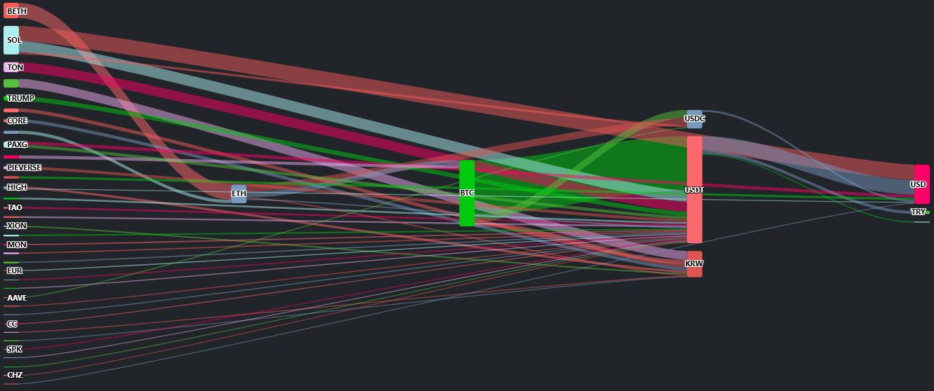 이날 주요 유입 종목은 ▲비트코인(BTC) 771만 달러 ▲XRP 611만 달러 ▲HYPE 346만 달러 ▲도지코인(DOGE) 225만 달러 ▲BFUSD 180만 달러 ▲BNB 117만 달러 등으로 자금이 분산됐다.