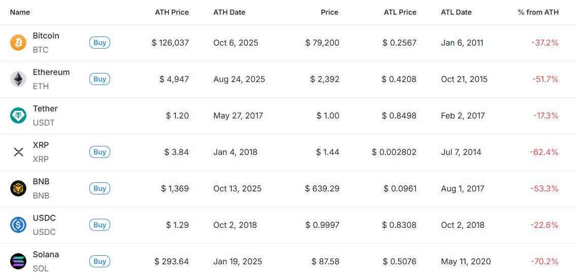 ① 비트코인(BTC) 현재가 79200달러|ATH -37.2%