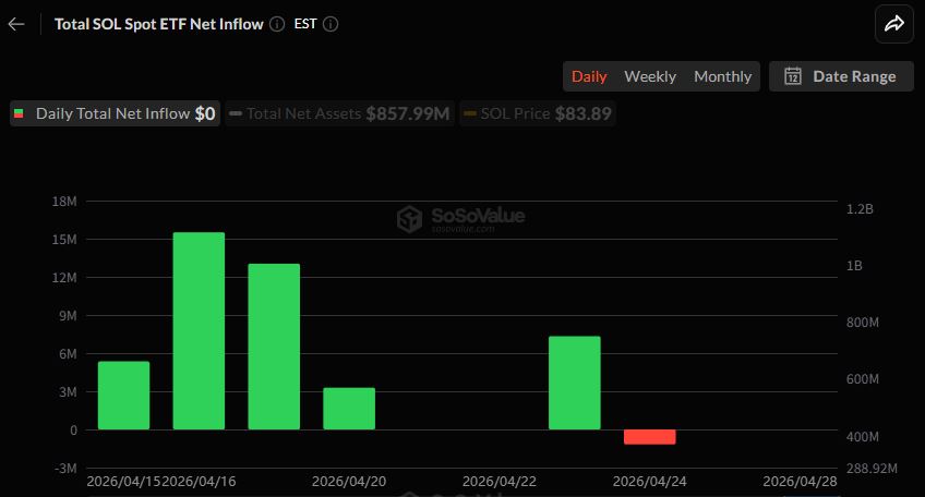 솔라나(SOL) 현물 ETF 시장은 보합세를 유지했다. 전일부터 자금 흐름이 정체되는 모습이다.