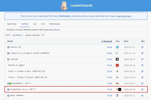 델리시움의 대규모 언어 모델(LLM) 관련 자원 조직화, 아키텍처 설계 및 최적화 전문성을 활용하여, 이번 협업은 전체 코드 저장소를 통합 지식 그래프로 변환하여 이슈 해결을 위한 컨텍스트 검색을 안내하는 다중 에이전트 시스템인 Prometheus를 출시했다(arXiv: www.arxiv.org/abs/2507.19942). Prometheus는 현재 세계적으로 유명한 SWE-bench 벤치마크 플랫폼(www.swebench.com)에서 검토를 위해 공개되다.