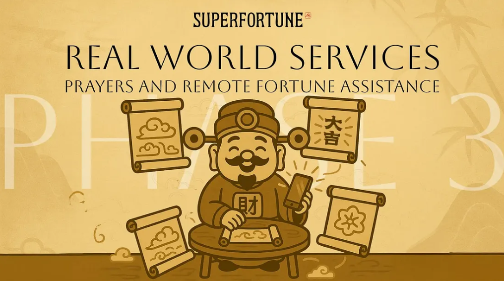 3단계는 실세계 영적 서비스와 e-오퍼링을 제공하는 단계다. 이 단계에서 SUPERFORTUNE은 이용자의 의도를 실제 수행·의식(ritual)·전문가의 지혜와 연결하는 디지털 영적 매개체로 기능하게 된다. 주요 기능은 부, 사랑, 건강, 커리어, 개인 성장 등 분야별 가상 사원에서 소원을 비는 기능, 고대 문헌에서 기원한 에너지 및 신성과의 연결, 사용자의 의도 실현을 돕는 의식적 지원과 에너지 증폭 등이 포함된다.