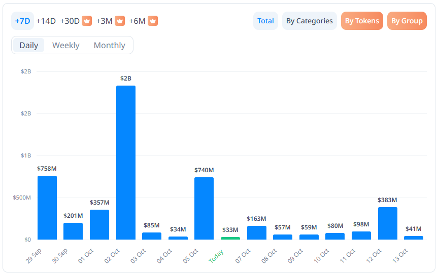 크립토랭크에 따르면 이번주 10월 6일부터 12일까지 한 주간 총 8억7300만 달러 규모의 토큰 락업이 해제된다.